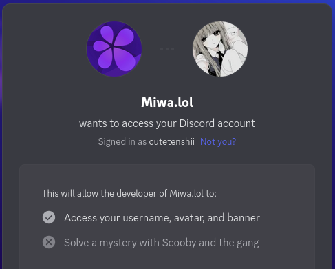 Linking your Discord account to your Miwa.lol account allows you to use the Discord presence card, which shows your current activity on Discord. It's also useful to use our Discord bot.